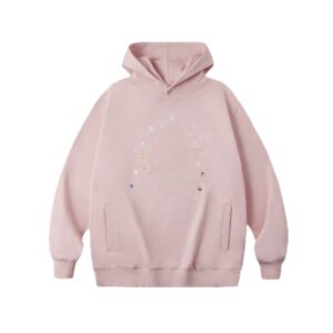 Sticker-Print Casual Pink Hoodie